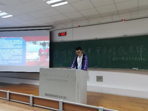 为了庆祝即将到来的中国共产党建党100周年和厦门大学建校100周年,加强“四史”教育,追溯“自强不息,止于至善”的文脉,振奋“爱国、革命、自强、科学”的精神,开启新百年“南方之强”的新征程,厦门大学信息学院2020级部于近期开展了“党团活动月”活动——以“聆听‘疫’故事,争当时代先锋”。本次活动由团员赵子文同学主持。