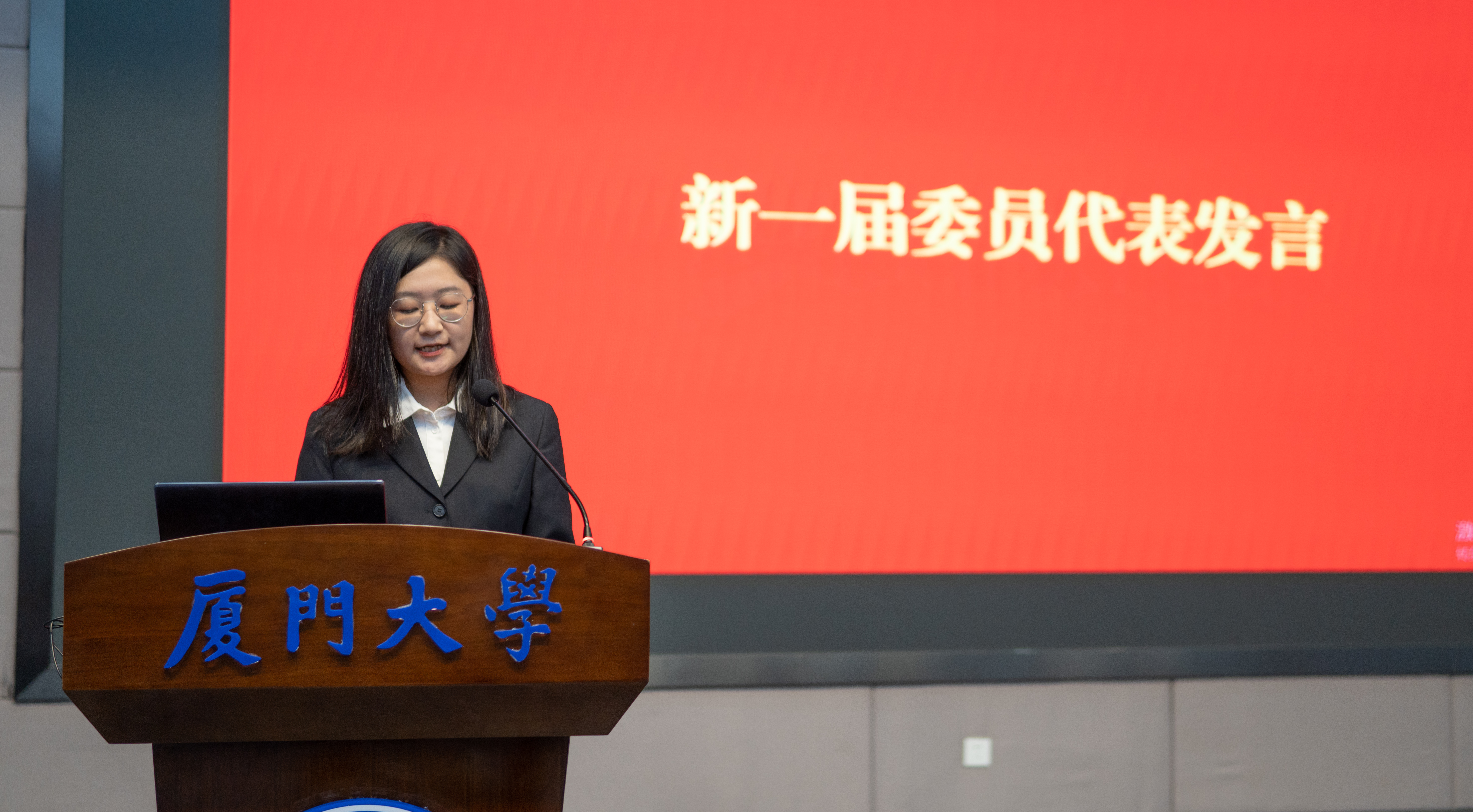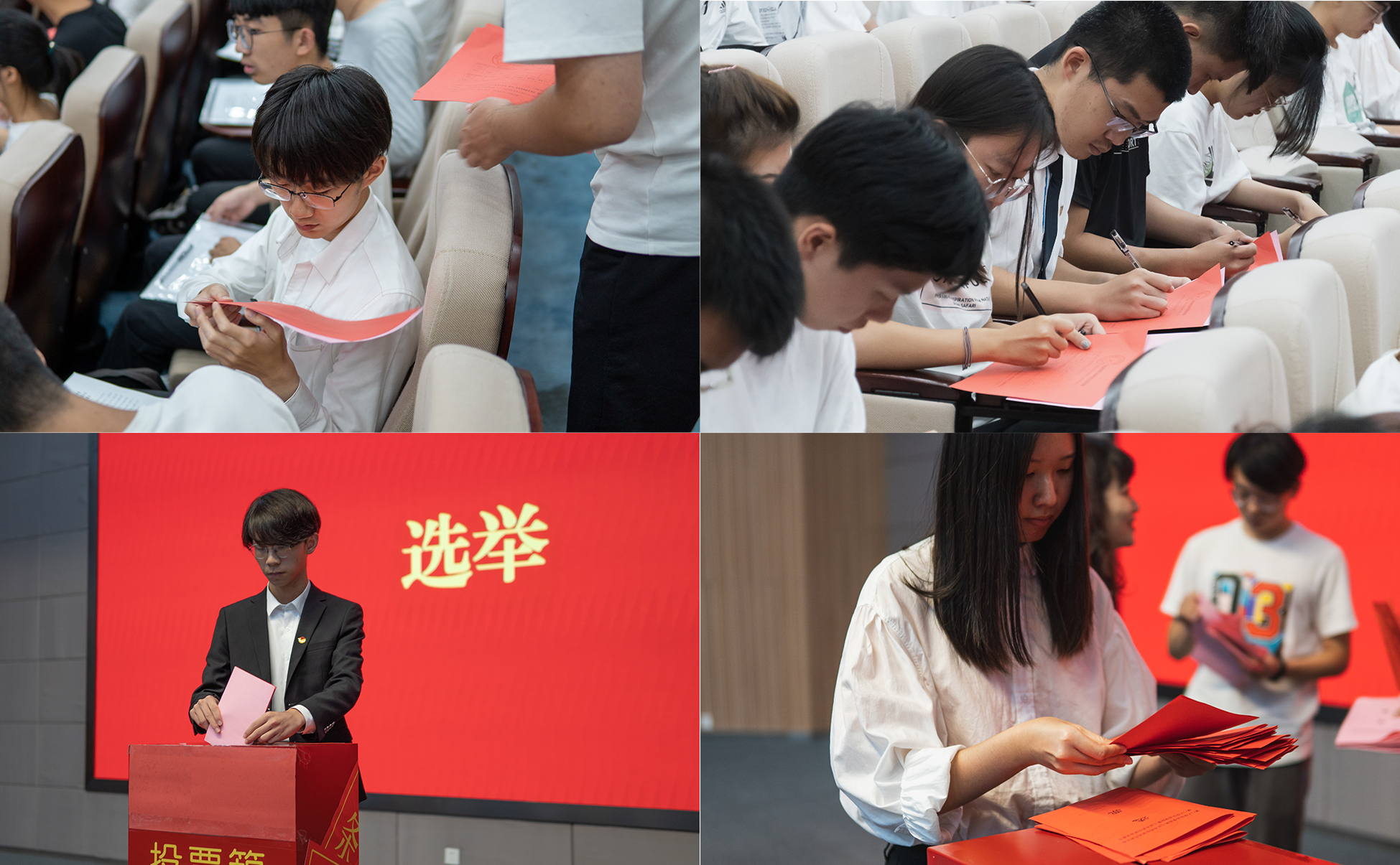 随后,大会选举产生了信息学院第三届学生委员会主席团、本科生团总支委员。刘畅、杨哲远、赵睿任信息学院第三届学生委员会主席团成员,叶薛华、申昱、赵欣蕾、马蕾、朱承奥、陈东胤、黄冬琳、谢哲涵、蔡东宁任信息学院第三届本科生团总支委员。第三届学生委员会主席团成员代表赵睿、团总支委员代表黄冬琳依次上台发言。他们表示,作为新一届的学生干部,面对未来一年的学生工作,他们定会继承优良传统,改正不足,以主人翁的精神,紧抓时代脉搏,不懈奋斗,取得更加优异的成绩。