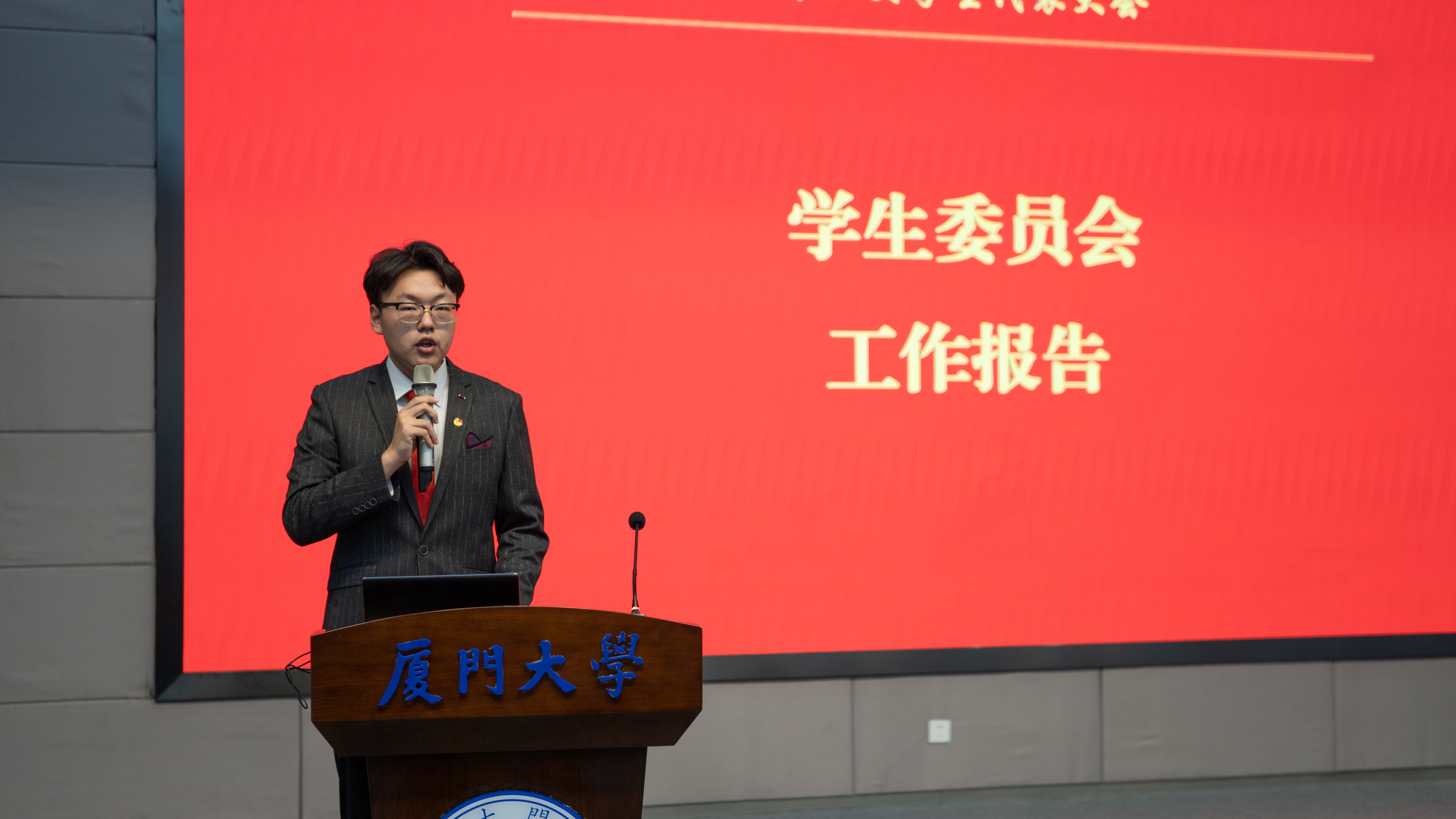 大会分别听取并审议了由学院第二届学生委员会主席团成员毛延廷、第二届本科生团总支书记彭筱琛所作的工作报告。报告对过去一年里学生委员会、本科生团总支各个方面的工作内容和工作成果进行了汇报,对一年以来一直支持学生工作的领导、老师、同学们致以衷心的感谢,对未来学生委员会、本科生团总支的发展建设做出了新的展望,也提出了更高的要求。