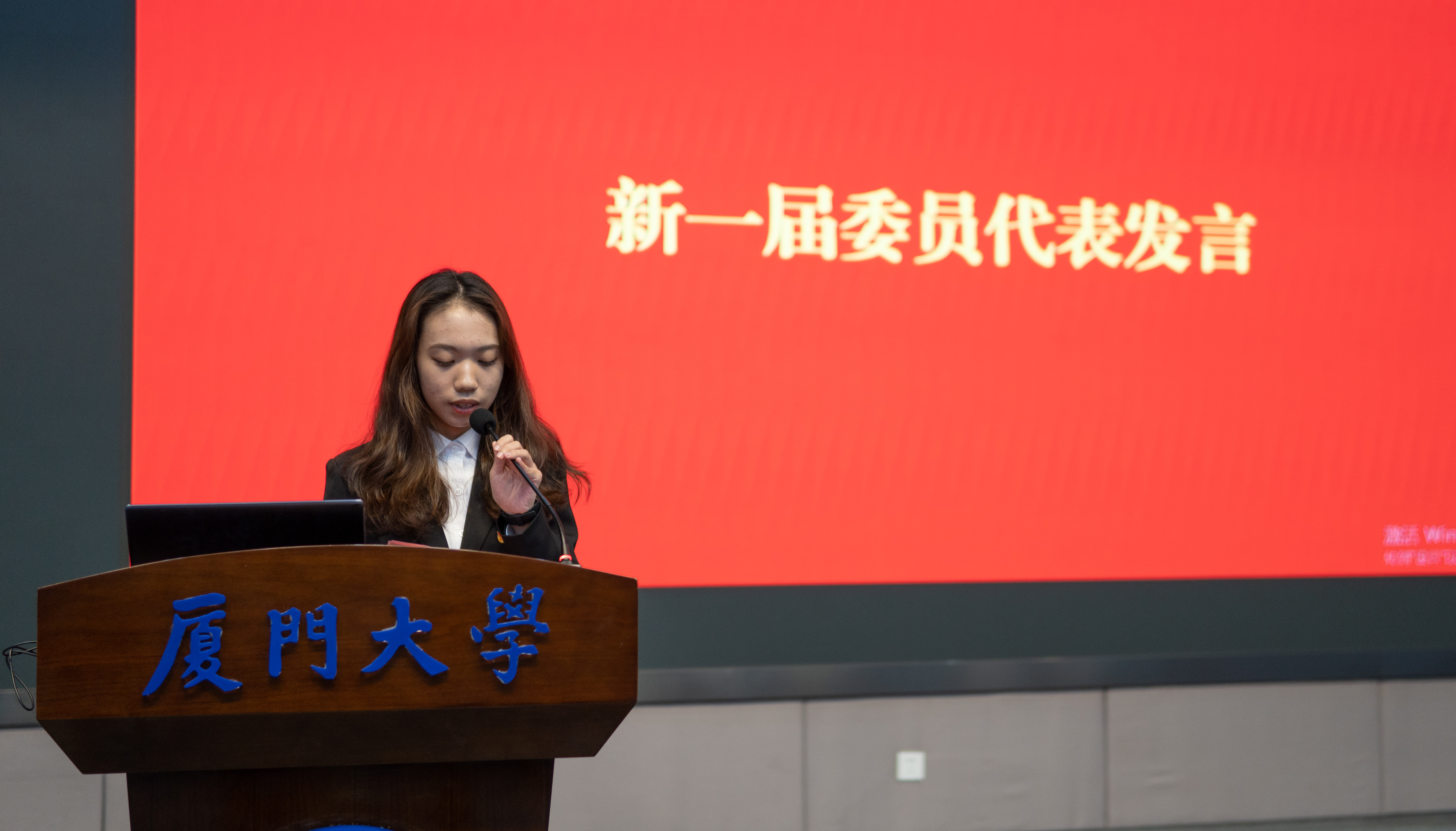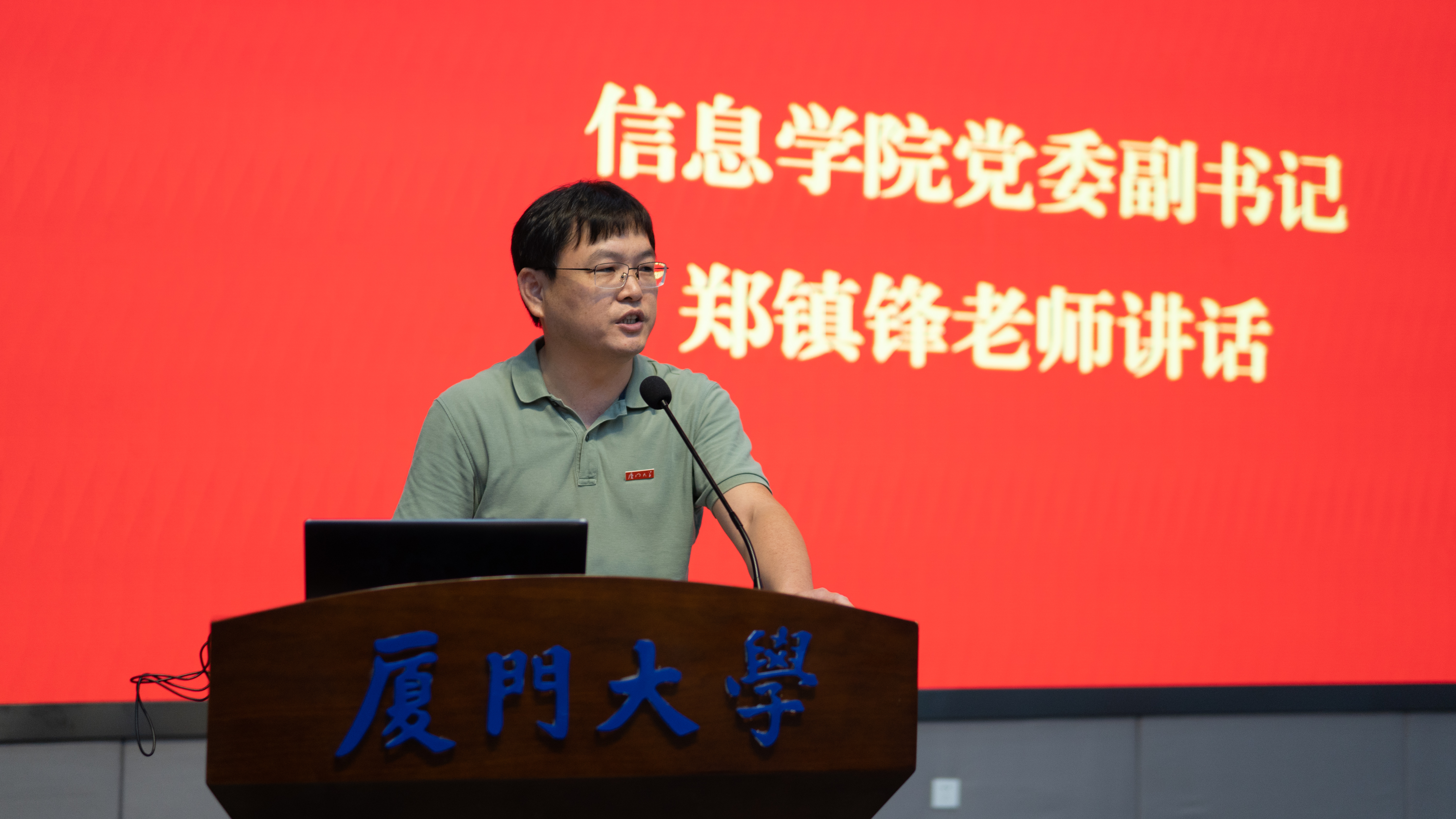 首先,学院党委副书记郑镇锋老师为大会致开幕辞。郑镇锋副书记肯定了过去一年学院学生会、学院本科生团总支在抗击新冠疫情、服务建党建校百年、促进教育教学,加强院风学风等方面做了大量卓有成效的工作,取得良好成绩。我院以总分第三名的成绩喜获厦门大学“学生工作先进单位”称号,这是信息学院建院以来首次获得该项荣誉,“团的组织工作”和“公寓学生工作”两个专项工作年度考评全校第一,荣获“学生工作特色单位”,同时学院学生会荣获2020-2021学年厦门大学“优秀院学生会”。对即将选举产生的新一届学生委员会成员和本科生团总支委员的工作,郑镇锋副书记提出了四点希望和要求:一是要不断强化责任意识,本着为全院学生团员服务的宗旨,踏实开展工作;二是要不断强化创新意识,在工作和建设中大胆创新,有效延伸;三是要不断强化服务意识,要密切与青年学生的联系,倾听青年学生的心声;四是要不断强化模范意识,在各方面发挥模范带头作用,通过自身的努力,带动身边同学,共同营造积极向上的学院文化。