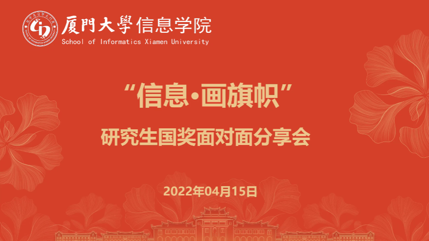 为进一步加强学院学风建设,充分发挥榜样引领作用,弘扬青春正能量,4月15日晚上,信息学院以线上方式举办“‘信息·画旗帜’研究生国奖面对面分享会”。本期分享会邀请到来自人工智能系的2018级优秀博士研究生林明宝与同学们分享自己科研学习、实习实践等方面的经验与感悟。学院团委副书记黄艺明老师出席本次分享会,近300名研究生参加本场分享会。会议由2021级硕士研究生张辰元同学主持。