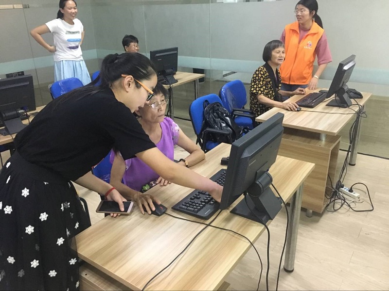 软件学院2016级本科生暑期实践队的同学们在指导老师李绍玉老师的带领下于7月5日走进厦港社区,开展“厦港街道老年公益电脑班”实践活动,帮助老人们学习使用电脑。