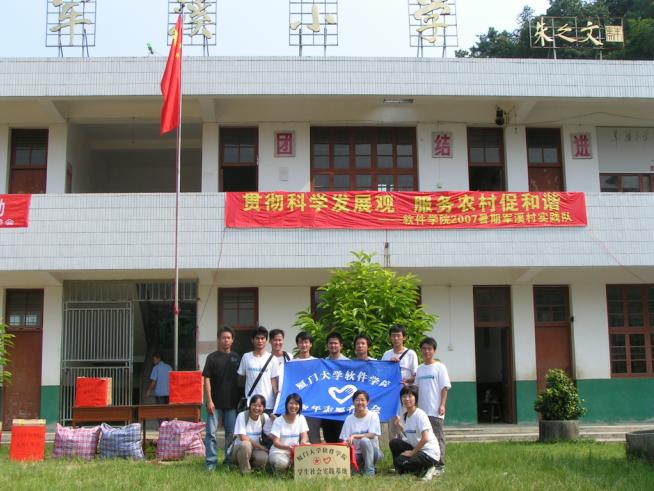 为激励广大青年学生深入学习实践“三个代表”重要思想,积极投身推动科学发展、促进社会和谐和海峡西岸经济区建设的伟大实践,提高他们对国情的认识和学以致用、实践动手的能力,我院今年再次组织了到军溪村的社会实践队,10名队员中有两位研究生、八位本科生,有5人为中共党员。他们将深入田间、山头,走访村民,帮做农活;前往红九团纪念馆和纪念碑缅怀先烈;并与军溪村的中小学生亲密接触,对他们进行学业辅导,组织健康有益的文化体育活动,和他们一起度过一个愉快、充实的暑假;实践队还将与当地镇、村干部进行交流,了解军溪村现状,畅谈发展思路,形成调研报告。