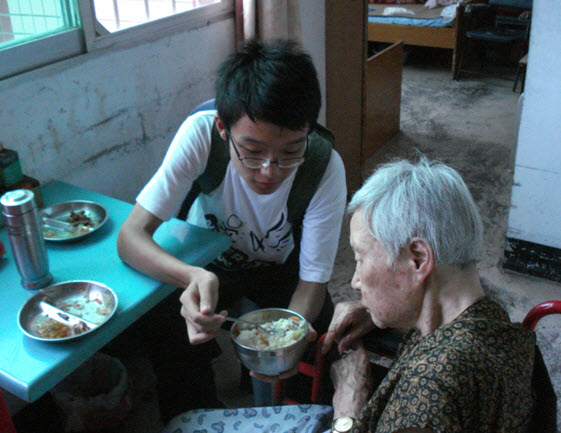 在敬老院,同学们有的清洗和处理带来的水果,分给各位老人,有的陪老人下棋,有的陪老人唠家常,有的帮老人整理东西,有的照顾身有残疾的老人,有的帮助工作人员做一些力所能及的事务。。。活动中,同学们倾听着老人们或辛酸、或幸福的各种往事,用他们的爱心、热心给老人们的晚年生活带来些许欢笑。不少同学多次参加活动,已经和院里的很多老人都非常熟悉。老人们像老朋友一样和他们打着招呼,十分热情地拉着他们问寒问暖。晚饭时间,同学们纷纷给行动不便的老人喂饭。每次活动都持续一整天时间,直到老人们用完晚餐、天色见晚的时候,同学们才依依不舍地和老人们道别。敬老院的工作人员对实践队的活动给予的了很高的评价,同学们的热情、周到给他们留下了深刻的印象。