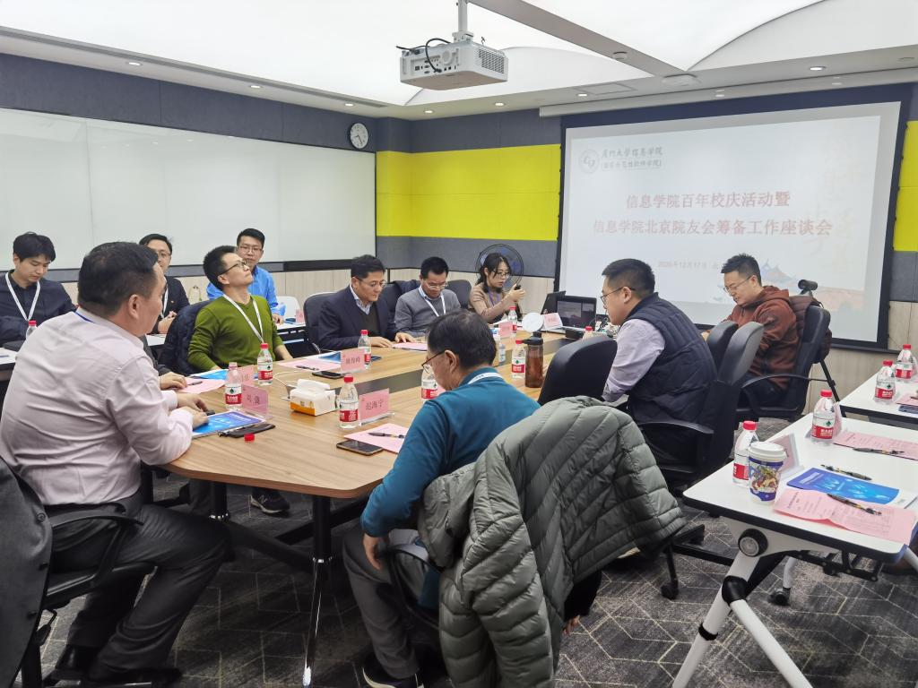 为推进信息学院北京院友会筹备成立,2020年12月17日下午15点30分,信息学院北京院友会筹备工作座谈会在北京开拓大厦1楼会议室举行。信息科学与技术学院原院长、软件学院首任院长周昌乐教授,信息学院副院长姚俊峰教授,部分北京院友代表参会,座谈会由学院党委书记刘弢主持。