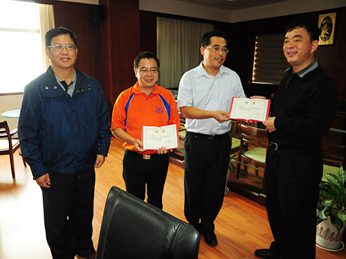 座谈尾声,厦门大学校友总会为93级谷振宇和吴喜平颁发了校友联系人荣誉证书。