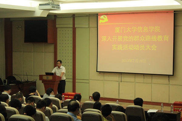 深入开展党的群众路线教育实践活动,是党的十八大做出的重大战略部署,我校属于第一批开展教育实践活动的单位,时间从2013年7月上旬起至11月底基本结束。按照学校要求,我院党委成立了教育实践活动领导小组和办公室,制定了并通过了《信息科学与技术学院深入开展党的群众路线教育实践活动实施方案》,并已报请学校党的群众路线教育实践活动第四督导组批准。此次动员大会的召开,拉开了我院群众路线教育实践活动的序幕。