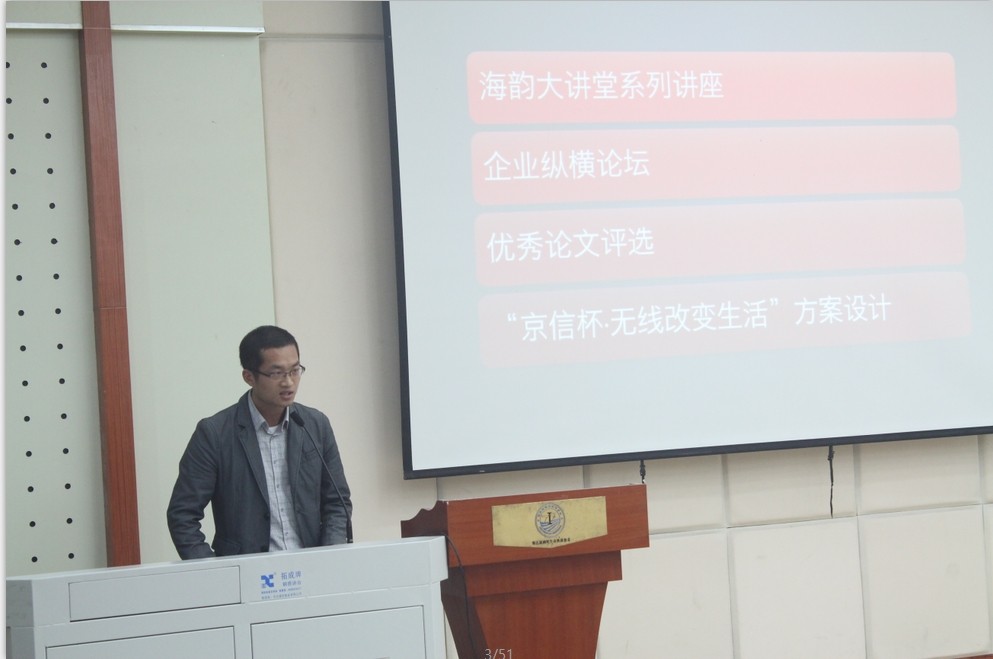 在研究生会主席团介绍了干训班的相关信息后,刘元庆老师向在场的同学提出了自己的期望与祝福。他希望同学们能通过次此干训班发挥自己的才智,磨练自己的意志,甘于付出,并能收获成果。随后,第一次跟研会全体同学们正式见面的李承华老师表示在今后的学生工作中希望能够跟大家积极配合,共同努力,共创辉煌。接下来研会主席王光宇用幽默风趣的演说与大家分享了自己在去年干训班的感悟,他想告诉大家的最重要一点是“在干训班你的收获会比你想象的更多”。在各位学员上台做了简要的自我介绍后,初次担任干训班班主任的黄艺明老师为本次干训班做了总结,此次研会干训班开班仪式圆满结束。
