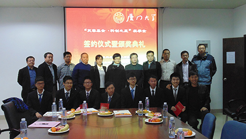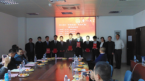 2014年12月27日星期六下午三点半,“93自动化芙蓉基金﹒科创之星”奖学金签约仪式暨颁奖典礼在厦门大学海韵园行政C号楼610会议室隆重举行。出席仪式的有93级自动化芙蓉基金校友代表、校友总会石慧霞老师、院党委副书记李承华老师、自动化系主任吴顺祥老师。仪式由院团委副书记刘晓峰老师主持。