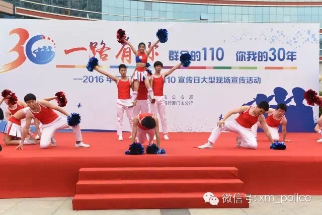 1月10日是一年一度的全国110宣传日。10日上午,“一路有你——群众的110,你我的30年”大型宣传活动在我市公安局前广场隆重举行,我院啦啦操队的16名队员代表厦门大学义务交警队为厦门市民带来活力四射的开场表演,青春靓丽的风采瞬间嗨翻全场。