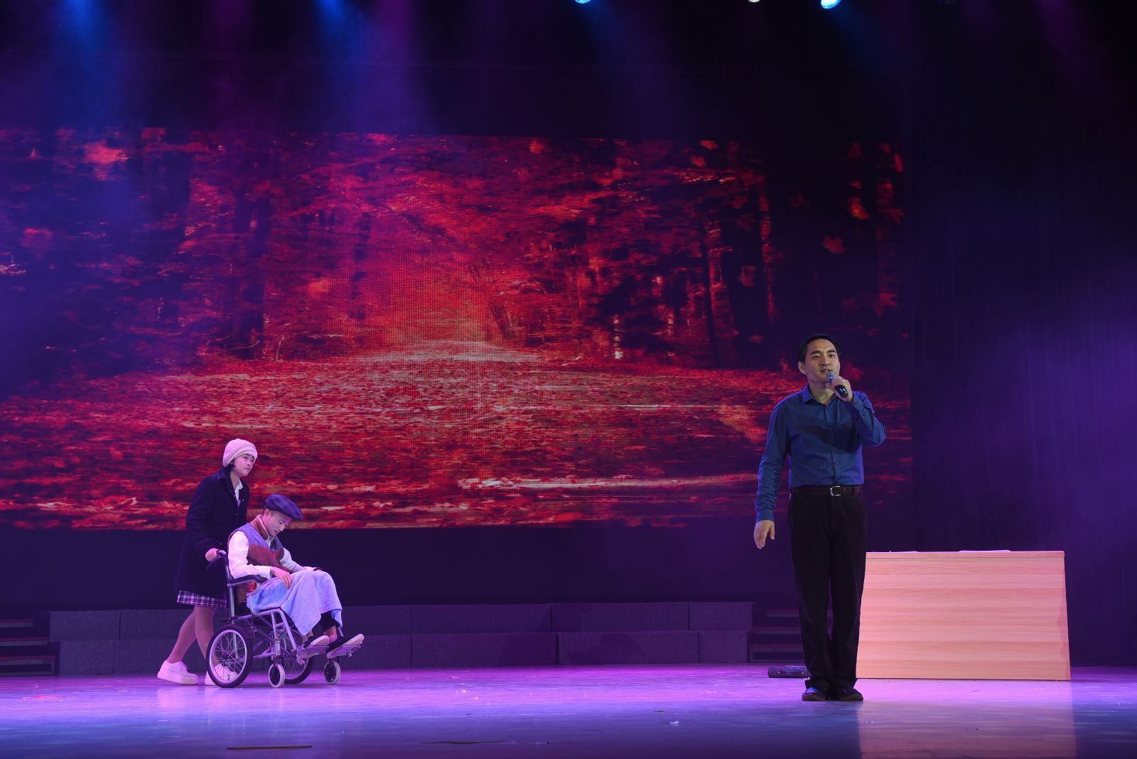 我院教职工表演的歌曲演唱与情景剧表演《人生》压轴出场。节目以三首歌曲为主,李加冕演唱的《同桌的你》表现学生时代青葱岁月的懵懂,刘茜演唱的《如果没有你》表现婚姻中的冲突与温暖,赵江声演唱的《当你老了》表现携手终生、相伴到老的温情。三首歌串联平淡却真挚的情感,带给人以感动,并最终获得优秀奖。由2013级陈嘉钰制作的展示我院女教工风采的视频获得“最佳视频奖”。