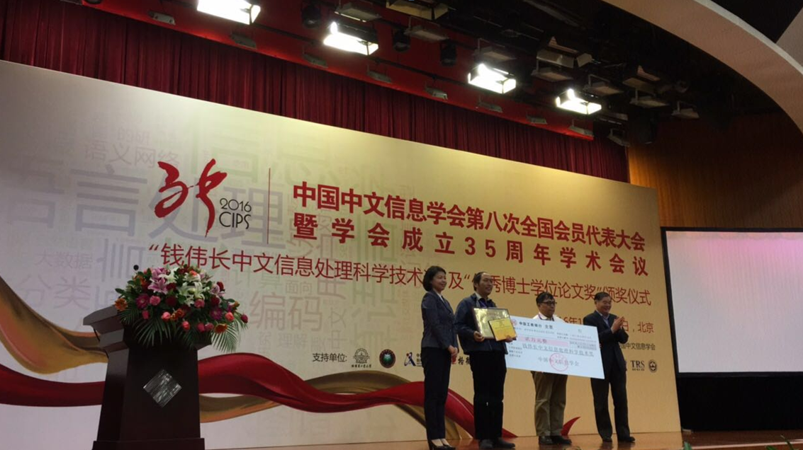 12月23日,中国中文信息学会第八次全国会员代表大会暨学会成立35周年学术会议在北京隆重召开。会上,我院史晓东教授团队研发的“多目标智能化简繁文本双向转换平台”获评“钱伟长中文信息处理科学技术奖”一等奖,史晓东教授和陈毅东副教授等团队成员到会接受表彰。