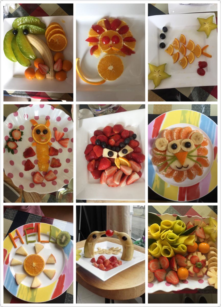 在水果拼盘活动中教师们充分发挥团结精神和聪明才智,经过一个小时的创作,一阵欢声笑语之后,一盘盘形态各异的水果拼盘就“新鲜出炉”了。教师们呈现的作品可谓独具匠心,让人大饱眼福。“小狮子”、“春”、“愤怒的小鸟”……各式的水果拼盘无论从构思到造型设计都独具匠心,令人眼前一亮。最后,大家互相欣赏和分享了各自的作品,活动在愉快的笑声和其乐融融的氛围中结束。