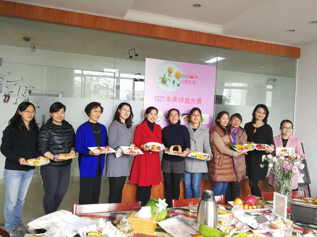 为了丰富学院女教职员工的业余文化生活,提高女教职员工的生活品质,同时让大家在紧张的工作之余“娱”悦身心,增强彼此间的凝聚力,体现团结合作精神,3月17日中午,我院在学院SUN FEEL咖啡厅(原C++咖啡厅)开展了一次别开生面、富有乐趣的“缤纷果季、创享生活——信息学院女教职工水果拼盘大赛”。