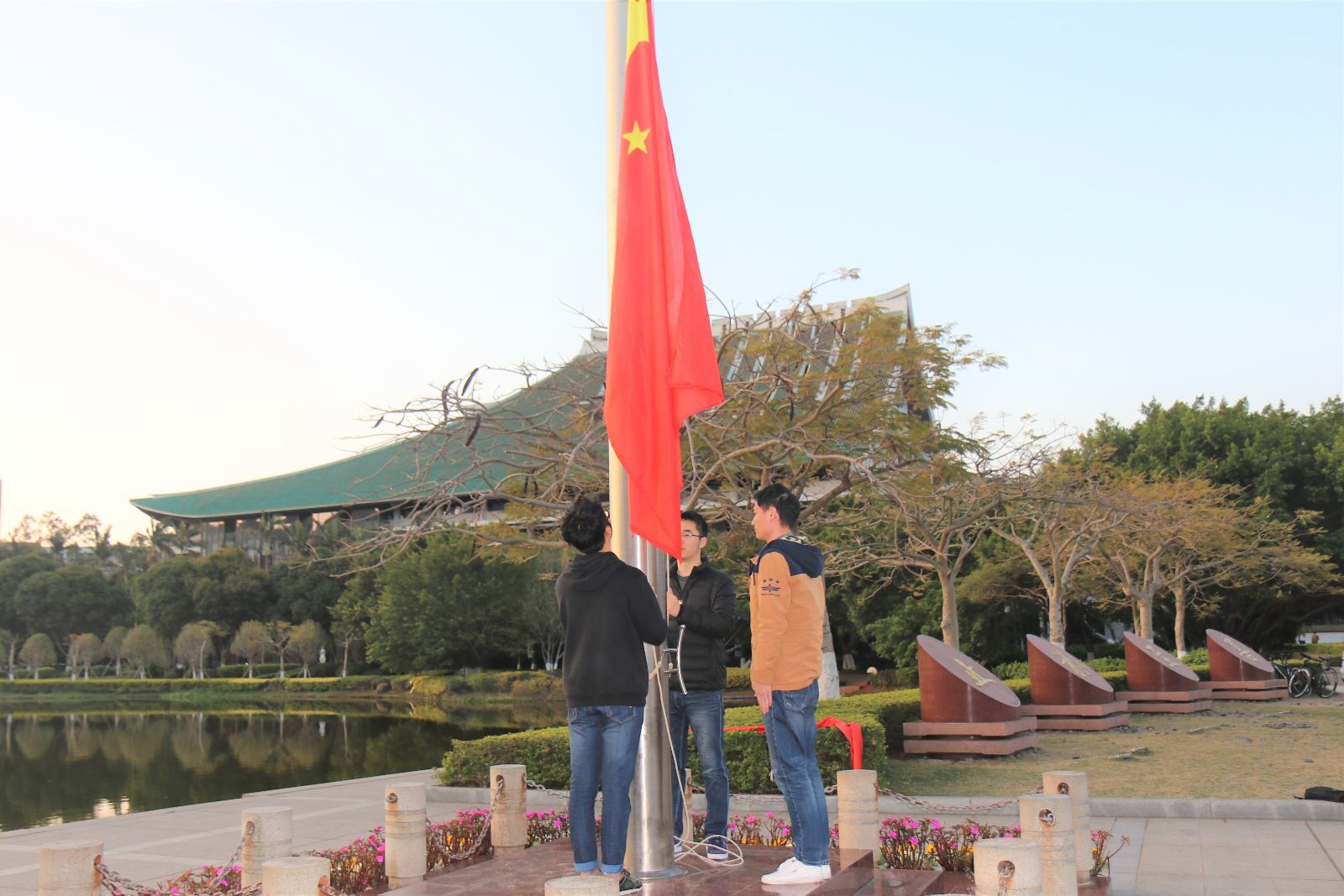 升旗仪式结束了,五星红旗飘扬在清晨的阳光下,软件学院全体学子也将如那耀眼的朝阳般发光发热,竖起青春的旗帜,扬帆远航!