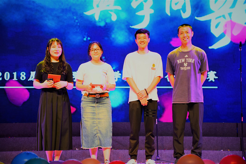 第二个游戏互动环节的内容是“猜歌名”。13位同学分三组进行抢答,为了争得唯一的话筒使出浑身解数,引得大家不禁捧腹连连。之后研究生带来一首《你曾是少年》,动听的歌声引起了大家对往昔的深深思念,动听的歌声让人感受到青年的坚毅与力量;大二(2)班的合唱《一生有你》跟随幽暗灯光下摇动的荧光棒缓缓而起,歌声传递出陪伴一生的温暖,同学们的独舞、双人舞也艳惊四座。