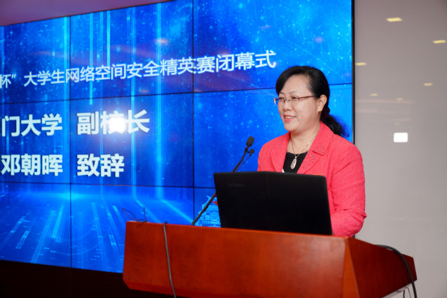 25日下午比赛闭幕式举行。中国工程院院士、教育部高等学校信息安全专业教学指导委员会名誉主任沈昌祥,厦门大学副校长邓朝晖,公安部网络安全保卫局总工程师郭启全,福建省公安厅网络安全保卫总队总队长林乐坚,厦门市公安局网络安全保卫支队支队长林世国,厦门市公安局网络安全保卫支队政委田耕,中国成人教育协会企业教育专业委员会秘书长王建军,中国教育电视台新闻中心主任田立,教育管理信息中心项目部主任付凯,厦门市美亚柏科信息股份有限公司董事长滕达,厦门大学教务处、信息与网络中心、信息科学与技术学院等相关负责人出席仪式。信息科学与技术学院党委副书记李承华主持。