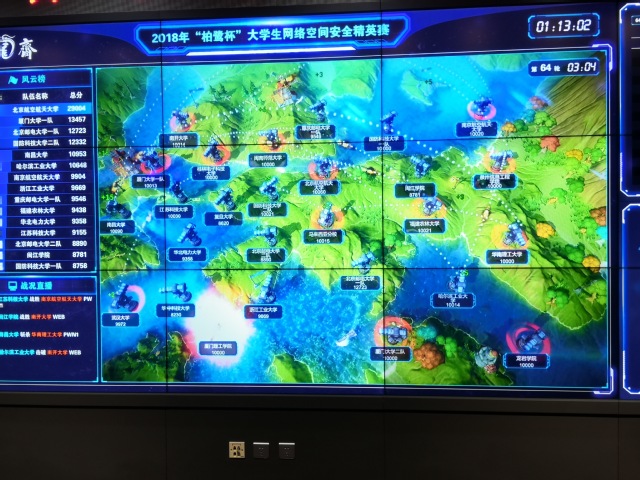 24日突围赛(CTF解题赛制)的“夺旗”大战正式打响。整场比赛精彩纷呈,在厦门大学Ph0en1x战队率先攻破第一道难关后,各战队奋力追赶,积分表和排行榜不断更新。经过8个小时的激烈拼杀后,江苏科技大学DWN战队、厦门大学Ph0en1x战队等27支战队成功“突围”携手挺进决赛。25日27支战队投入到“人人攻防”的激烈“厮杀”中。在AWD模式下,每个队伍都需要维护多台服务器,服务器中存在多个漏洞,利用漏洞攻击其他队伍可以进行得分,修复漏洞或添加防御策略可以避免被其他队伍攻击失分。最终,经过六个半小时的鏖战,决出了冠亚季军。