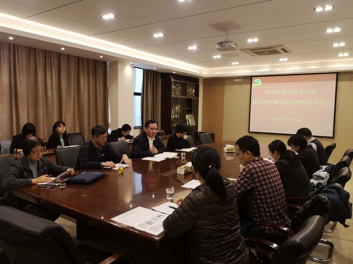 1月4日下午,学院党委在海韵行政楼C610会议室召开教工党支部书记述职考核评议会。学院党委全体委员、教工党支部书记及委员、辅导员参加会议,会议由党委刘弢书记主持。
