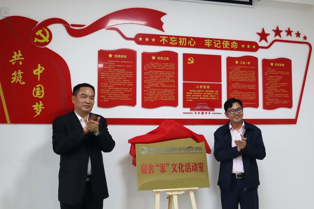 5月8日下午,学院宿舍“家”文化活动室揭牌暨教师入住学生宿舍计划启动仪式在海韵学生公寓7号楼124宿舍举行。校学生工作部(处)副部(处)长陈泗林,信息科学与技术学院党委书记刘弢、副书记杨蔷、学工组全体成员、教师代表、学生骨干代表出席仪式。信息科学与技术学院党委副书记李承华主持仪式。