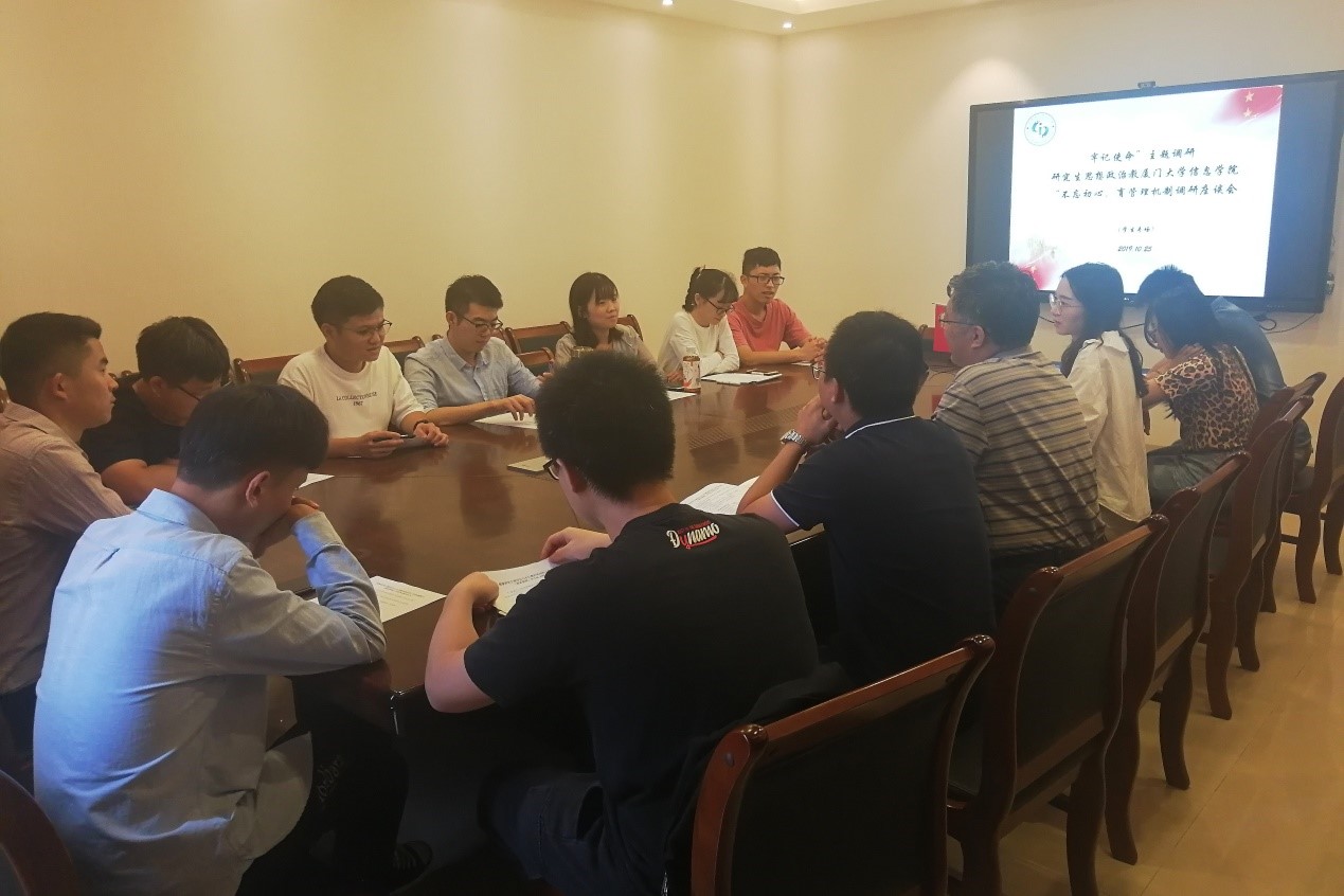 10月25日下午,我院学工组在行政楼C501会议室召开“不忘初心、牢记使命”主题调研之研究生思想政治教育管理机制调研学生专场座谈会。会议由学院党委副书记杨蔷主持。学院团委副书记黄艺明、学院辅导员蔡婧蓉以及十名硕博士生代表参加了座谈会。