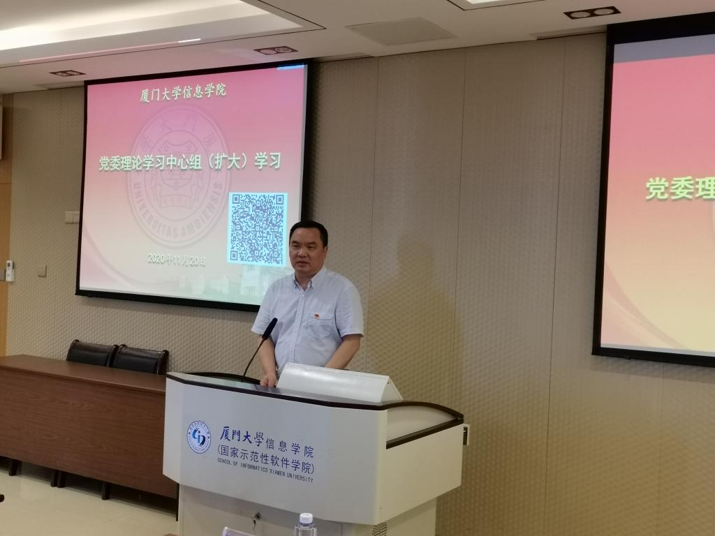 11月20日下午,学院党委在海韵园行政楼C505会议室召开理论学习中心组扩大会议,专题学习《习近平谈治国理政》第三卷。我校马克思主义学院副院长张艳涛教授受邀做“习近平治国理政的内在逻辑与主要风格”辅导报告。学院党政领导,系所平台负责人,教工党支部书记,学生党支部书记,党员科级干部参加了学习。党委书记刘弢主持会议。