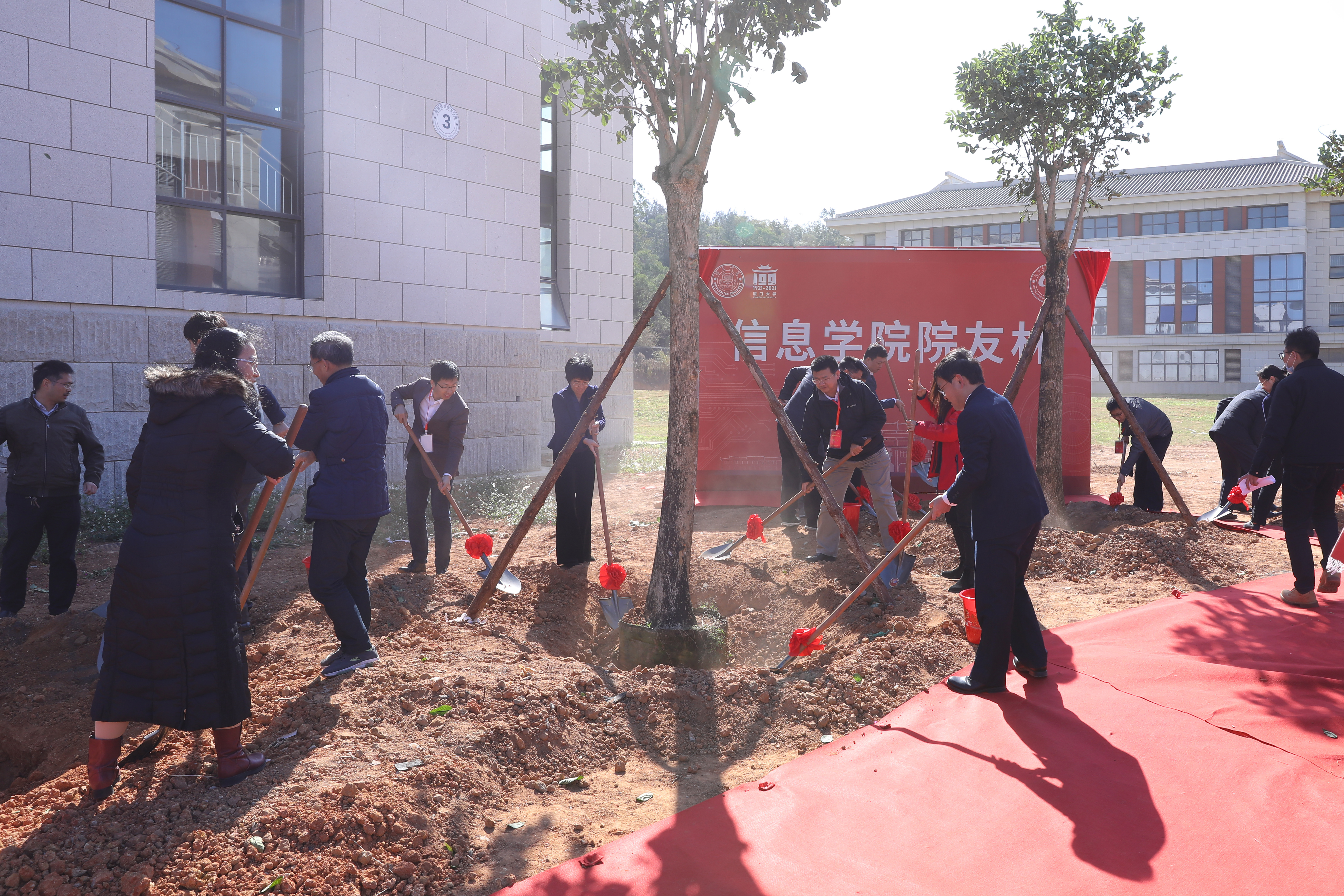 十年树木,百年树人,赤诚之心,绿树见证。为了更好地美化学院,体现院友对母院的情感,我院在新院址行政楼西南角开辟院友林,现场的领导、来宾共同为信息学院院友林的开辟设立培土。