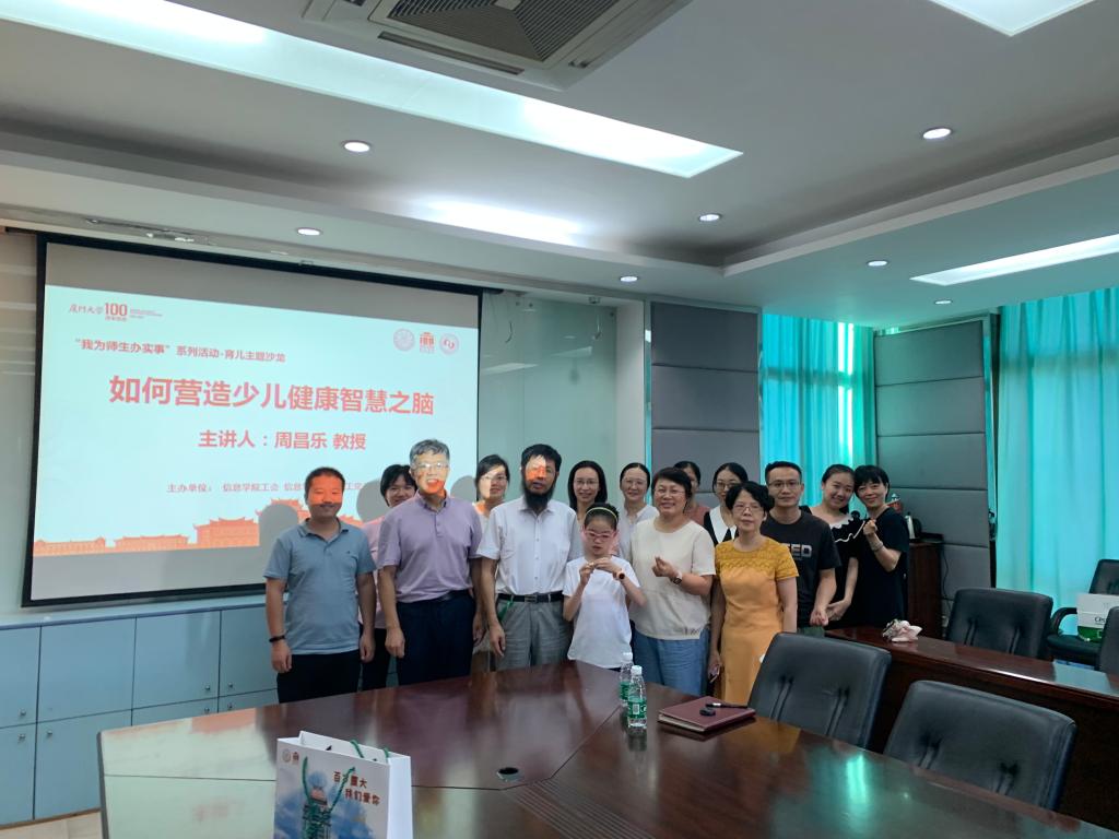 为落实“我为师生办实事”项目,缓解教职工的生活和工作压力,搭建教职工联系交流平台,学院工会和院办教工党支部联合举办育儿主题沙龙,于7月14日下午邀请学院老院长、人工智能系教授周昌乐老师为学院教职工开讲《如何塑造儿童健康智慧之脑》。活动由院办教工党支部书记林珏主持,学院工会主席杨蔷及部分教职工参加。