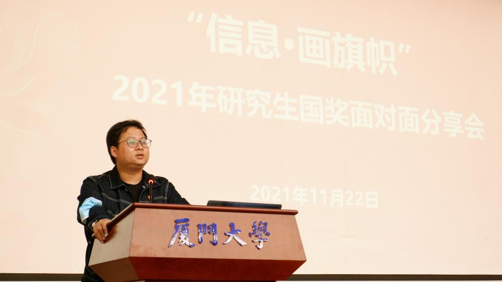 丹枫迎秋,景色宜人,为提高我院研究生学术创新能力,帮助研一新生尽快投入科研学习,高效规划研究生生活,信息学院于11月22日下午在翔安校区图书馆大报告厅举办“‘信息·画旗帜’2021年研究生国奖面对面分享会”。学院团委副书记黄艺明及2021级全体硕士研究生参加本次分享会。分享会由新生郑冠仪主持。