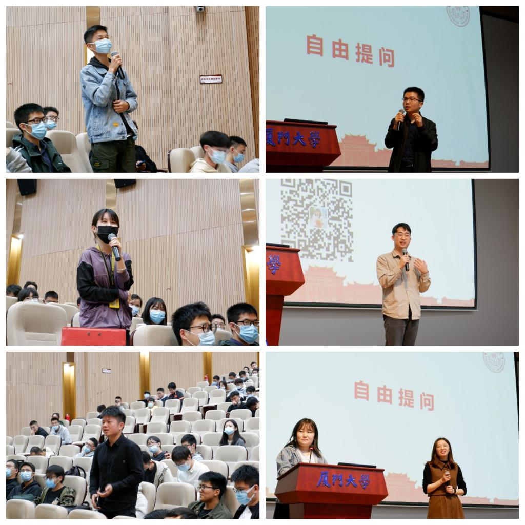 在提问交流环节,现场同学们就阅读论文方法、如何权衡科研和竞赛的时间以及竞赛技巧等问题踊跃提问,四位主讲人积极为同学们答疑解惑,提出宝贵建议,现场气氛热烈。