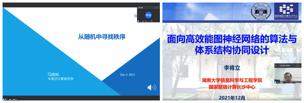 在特邀报告环节,商汤科技联合创始人林达华教授介绍了人工智能新时代对系统研究的机遇和挑战,深入浅出地剖析了二者之间所存在的紧密联系和未来的发展可能。爱丁堡大学的樊文飞院士介绍了单机图算法的并行化研究,从并行系统和并行算法两个角度对该问题展开了深入的探索。卡塔尔计算研究所主任科学家马晓松教授分享了如何将图系统或分布式存储中大量的随机访问或数据放置转换为顺序的或有序的存贮及使用的有趣观察和方法。湖南大学校长助理、信息科学与工程学院院长李肯立教授介绍了面向高效能图神经网络的算法与体系结构协同设计。华为MindSpore首席架构师金雪锋部长结合华为开源的AI框架MindSpore的实践,探讨了AI框架的技术演进之路。清华大学计算机系翟季冬副教授探讨了在当前以及下一代高性能计算机上,如何开展异构高性能计算机编程模型和优化。