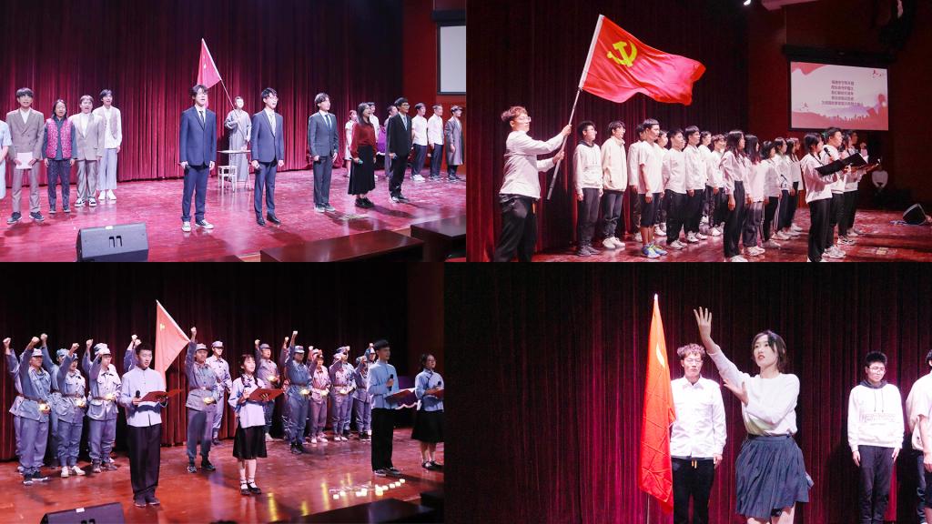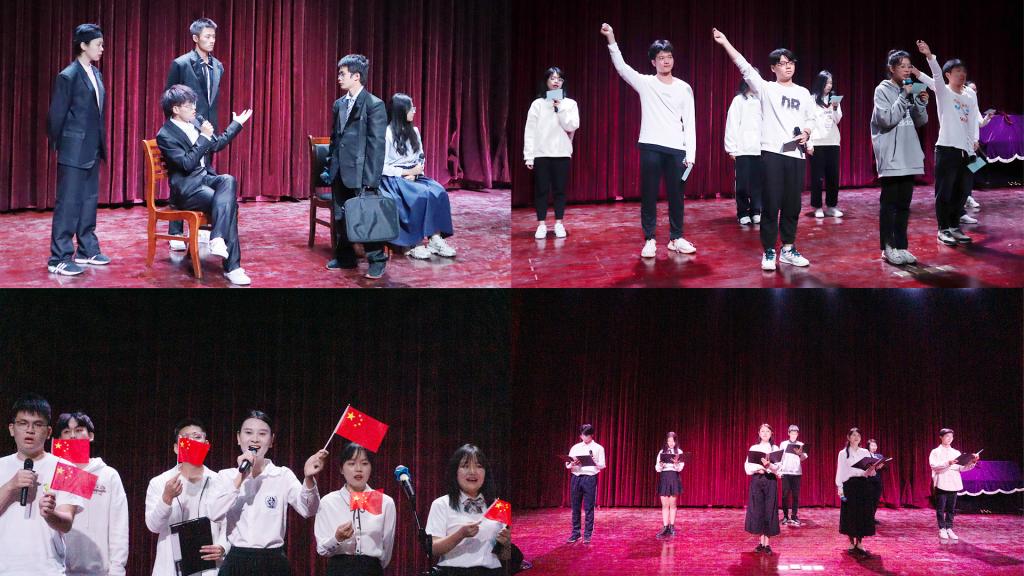 辅导员刘茜、成炘儒与大一学生带来群诵《党的赞歌》,深情礼赞中国共产党一路走来的不懈奋斗与伟大斗争精神。辅导员熊剑龙激情演绎歌曲《大中国》,传递了对祖国繁荣昌盛的衷心祝愿。