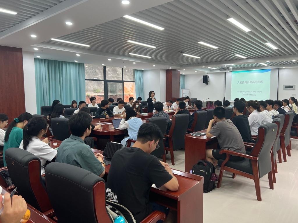 5月23日下午,信息学院党委党校“强信工程”一期专题理论学习讲座在翔安校区新院址1号楼会议室召开,马克思主义学院党委书记石红梅教授作为主讲嘉宾,与学生面对面,就“人的自由而全面的发展”为主题展开交流。信息学院党委书记刘弢,党委副书记郑镇锋,团委副书记刘茜,辅导员贾君、蔡婧蓉、郑一鸣、成炘儒,“强信工程”一期全体学员,部分党员、入党积极分子代表参加活动。