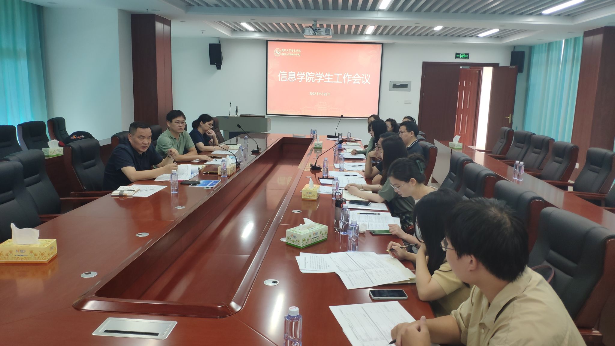9月22日上午,信息学院召开新学期第一次学生工作会,交流研讨学生工作重点难点问题,部署本学期学院学生工作。院党委书记刘弢出席并讲话。