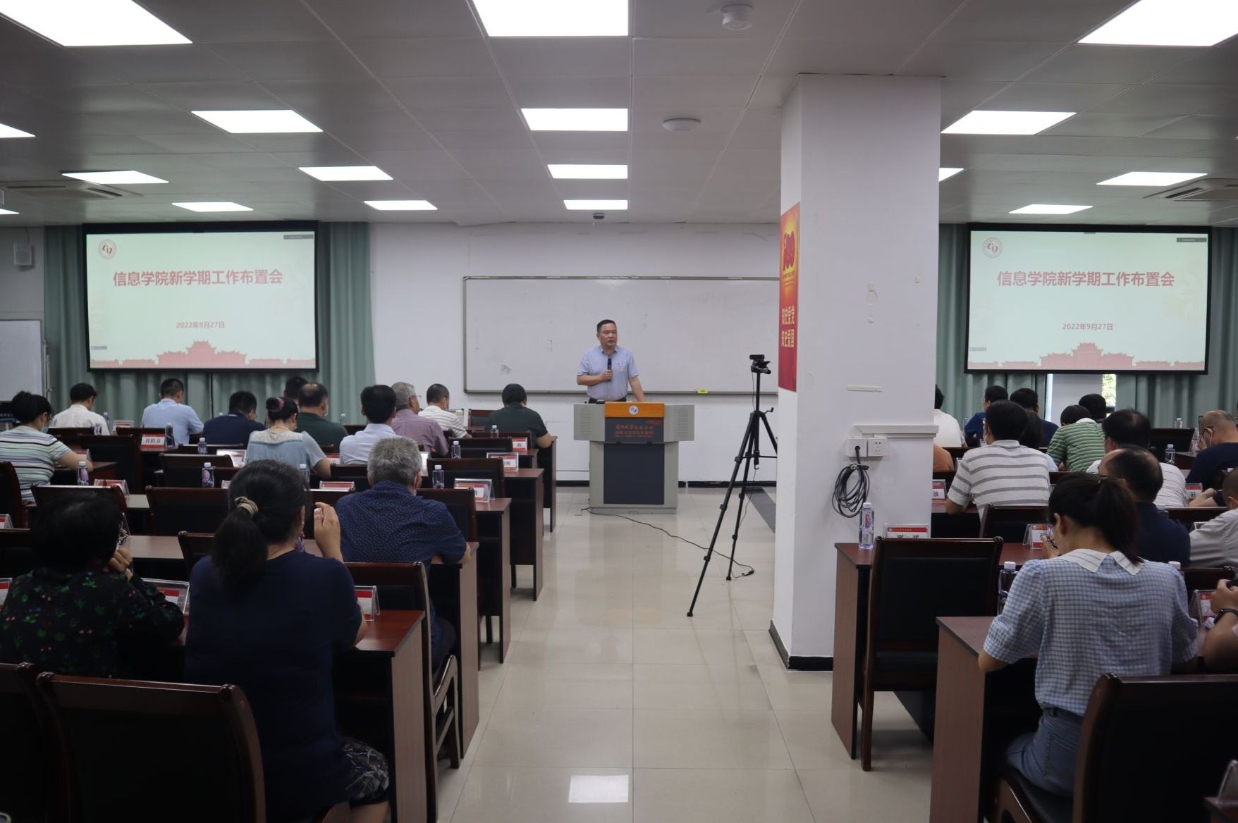 会议传达学校新学期工作布置会主要精神和具体要求,通报学院2022年暑期务虚会的研讨情况和主要成果,深入分析信息学科、学院面临的形势任务,就做好本学期重点工作进行部署动员。