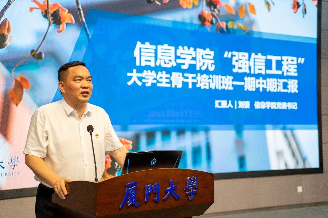 在全院上下喜迎党的二十大胜利召开之际,10月14日下午,信息学院党委党校“强信工程”首期大学生骨干培训班中期总结报告会暨二期开班仪式在翔安校区举行。