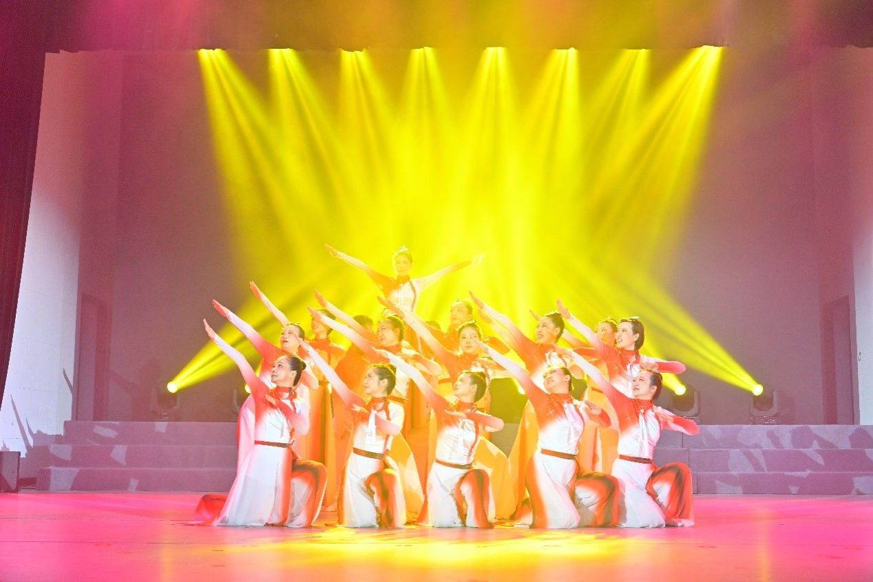 在余音中,第二部分舞蹈——《奋进》将文艺汇演逐渐推向高潮,为现场观众带去一场视听盛宴。演员们倾情演绎,以华美的舞姿歌颂党、歌颂祖国、歌颂美好生活,以澎湃的热情诠释对祖国未来的美好祝愿和对生活的无限热爱。
