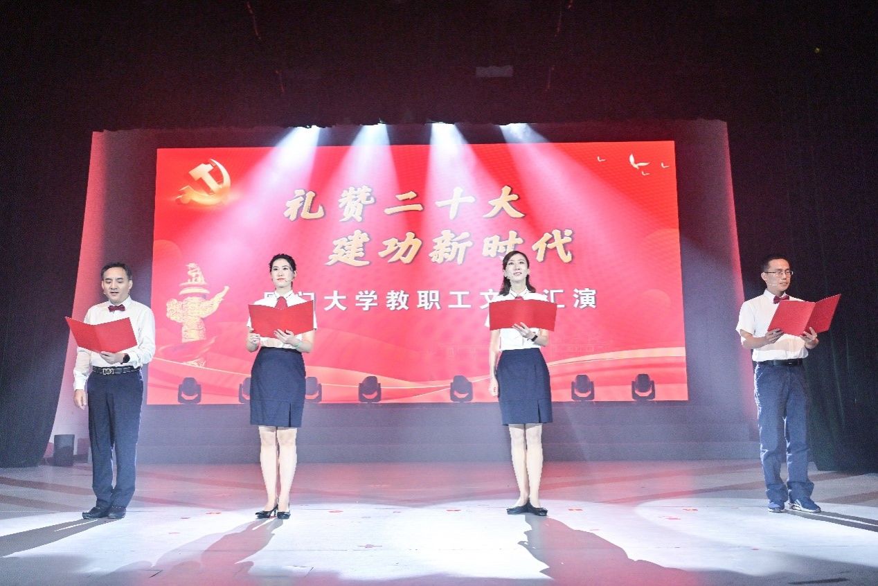 为庆祝党的二十大胜利召开,唱响新时代爱党爱国爱人民的主旋律,展示我校教职工砥砺奋进、昂扬向上的精神风貌,11月12日-11月13日,我校在建南大会堂隆重举行“礼赞二十大,建功新时代”厦门大学教职工文艺汇演。全校共28支队伍参加比赛,各展风采,经过激烈角逐,我院选送的舞蹈朗诵类节目《奋进》以优异成绩荣获三等奖,学院荣获组织奖。