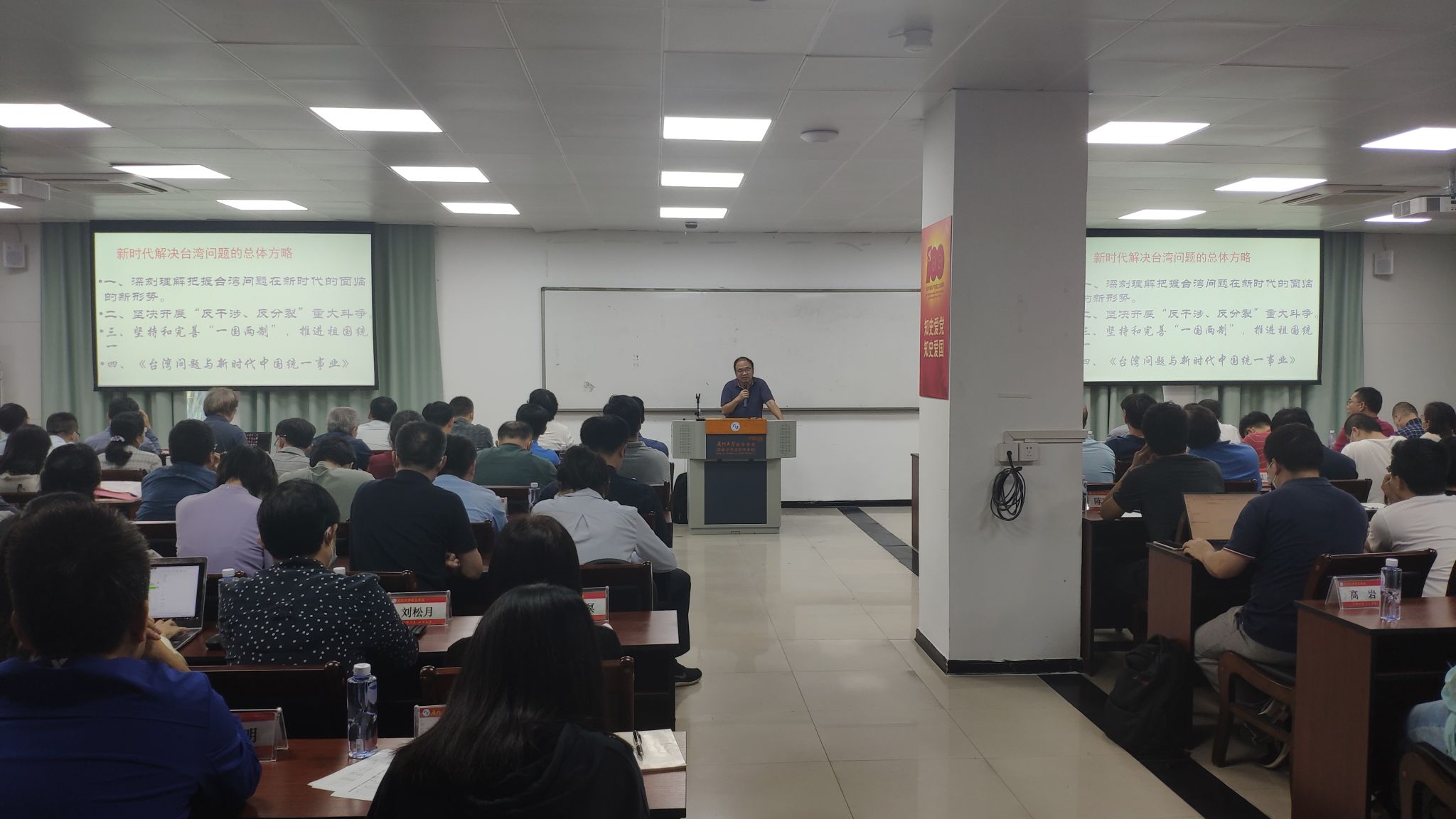 为深入学习党的二十大精神,引导教师准确把握党对台工作的历史方位,在推动两岸关系和平发展、融合发展中作出新贡献。11月21日,信息学院党委邀请厦门大学台湾研究院副院长张文生教授作《新时代解决台湾问题的总体方略》的专题报告。院党委书记刘弢主持。