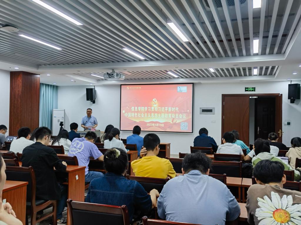 4月19日下午,信息学院召开学习贯彻习近平新时代中国特色社会主义思想主题教育动员会。学院党委书记刘弢主持会议并作动员讲话。学校第七巡回指导组组长邵鹏飞到会指导并讲话。