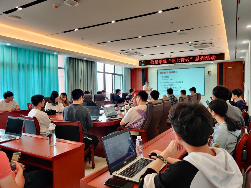 为加强学生职业生涯规划指导,4月25日下午,信息学院“职上青云”系列活动之“学生阶段如何玩出自我”分享会在正信楼1号楼401顺利举行。本期分享会特邀嘉宾为上海交通大学电子与信息工程李明煜博士,活动由信息学院就业指导中心主办,学院团委副书记刘长青主持。