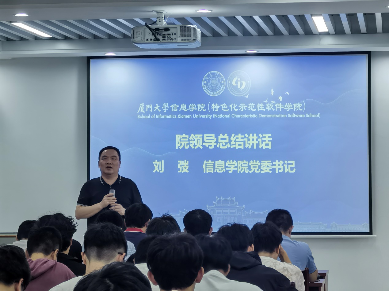 刘弢作总结讲话。他表示,实行大类招生培养改革,是为了尊重学生个性化选择,促进复合型创新人才培养,努力实现学生多样化发展。信息学院将全力为同学们提供丰厚坚实的硬件条件,实施教师深入学生宿舍、学生社区等“一站式”服务,营造浓厚向上的学术生态成长氛围,为同学们的成长成才保驾护航。希望同学们热情拥抱改革,把握时代机遇,进一步树立学业自信,养成自强自律的学习生活习惯,充分利用学校学院资源实现人生追求,早日成长为能担重担、可堪大用的时代新青年。