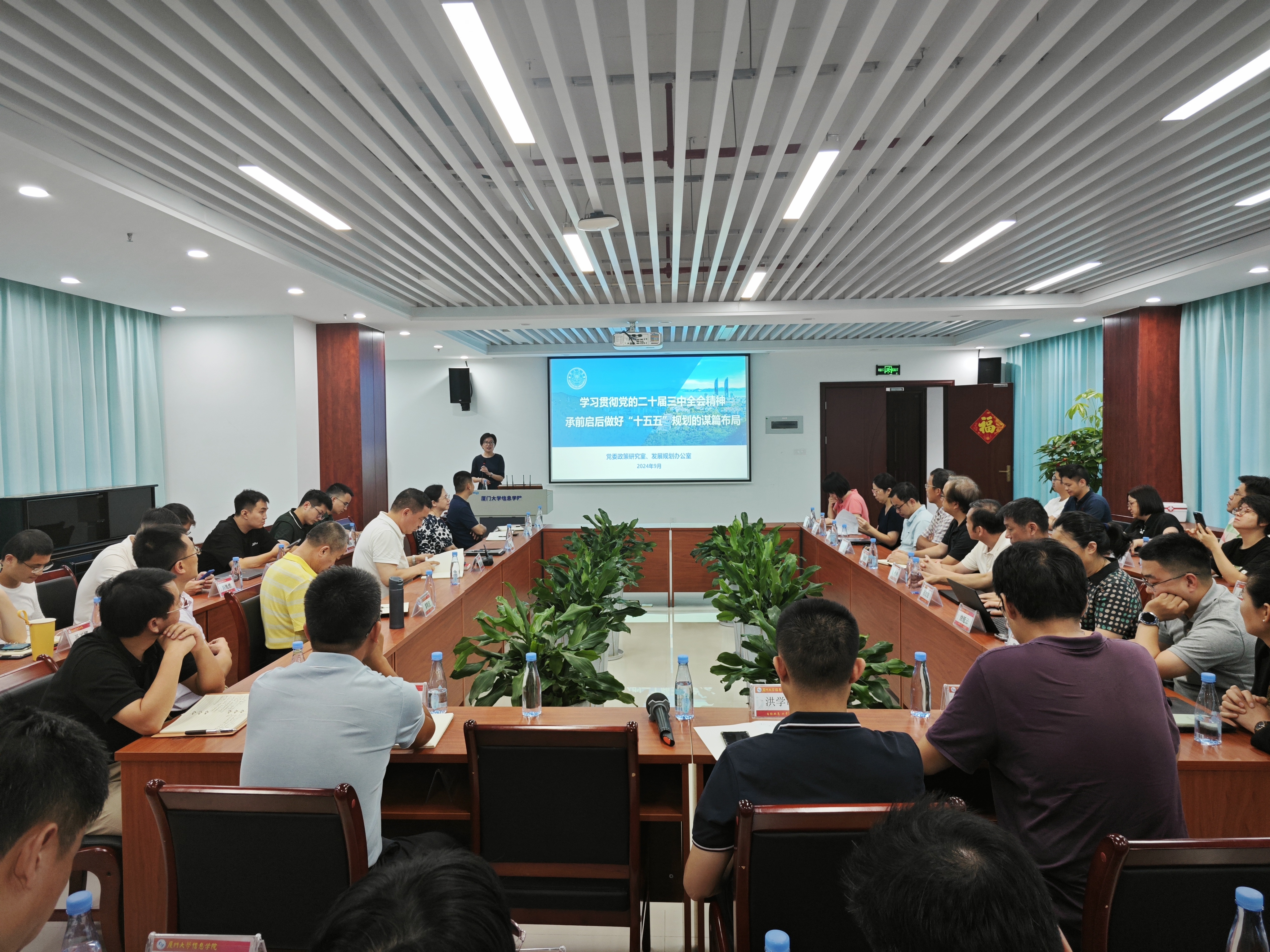 为深入学习贯彻党的二十届三中全会精神,科学谋划学院“十五五”发展,9月18日下午,信息学院党委举行理论学习中心组(扩大)学习会,邀请校党委政策研究室主任、发展规划办公室主任、厦门大学学习贯彻党的二十届三中全会精神宣讲团成员杨柳副教授作《学习贯彻党的二十届三中全会精神,承前启后做好“十五五”谋篇布局》专题讲座。讲座由学院党委书记刘弢主持。