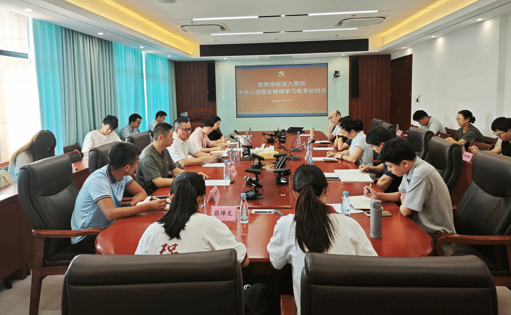 9月17日上午,信息学院召开深入贯彻中央八项规定精神学习教育总结会,全面总结学院开展学习教育的做法成效和经验启示,并对巩固拓展学习教育成果、推进作风建设常态化长效化作出部署。院党委书记刘弢主持会议。
