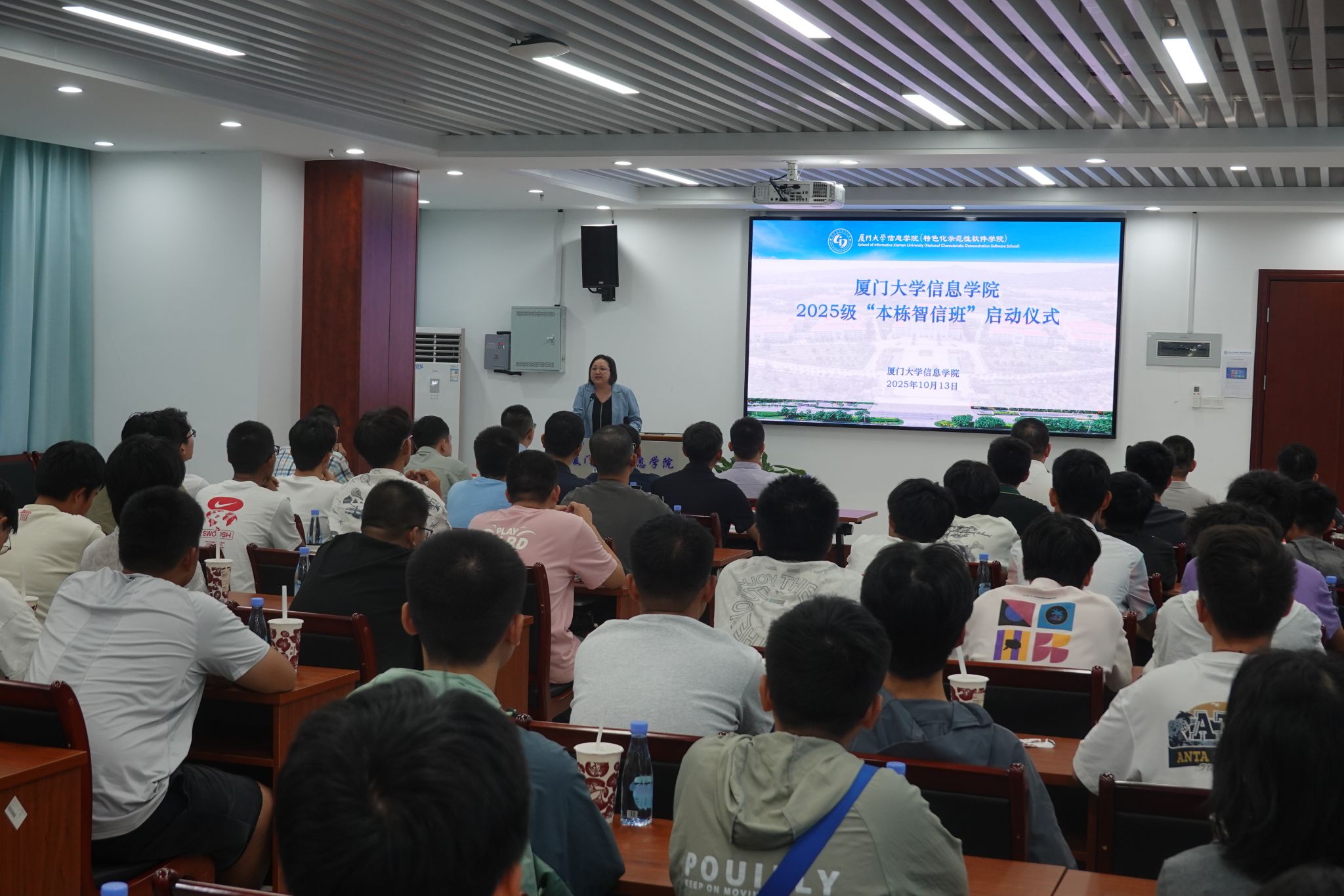10月13日下午,厦门大学信息学院2025级“本栋智信班”启动仪式在正信楼108举行。信息学院党委书记刘弢,党委副书记薛志平,副院长袁飞、任课教师代表、本科生导师代表、以及本栋智信班46名全体学生共同出席仪式,见证这一重要时刻。仪式由王晓黎主持。