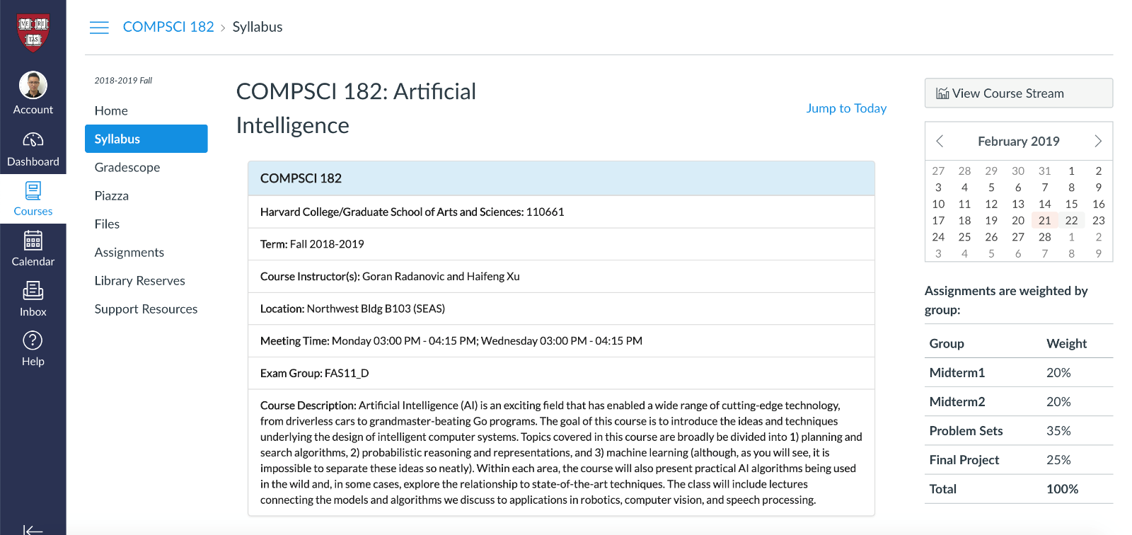 课堂方面,我认为那边最大的特色是互动很多。由于平时有科研任务,所以我在哈佛主要只听过三门课:CS 182: Artificial Intelligence、CS 281: Advanced Machine Learning 和CS 165: Data Systems。这三门课上,首先学生(主要是本土学生和印度学生)很主动,经常打断老师提问题,有时候问的问题会很“基础”,但他们也会勇敢提出来。在我厦的课堂上,我觉得学生并不经常主动提问题,一般是等老师提问,而老师提问的频率也比那边的老师要低很多。除了课堂提问,有些老师(比如CS 281的老师)会做一个实时匿名提问的系统,针对一些不好意思举手或者坐的太远(我听的有两门课的教室很大,属于lecture hall那种)的学生,学生可以在里面写下自己的问题,老师看到里面有问题了就会停下来解答。我觉得这个其实不难办到,用一些共享文档或者QQ群匿名就能达到相似的效果。在课后,仍有很多学生有对课堂和作业等方面的问题,通常会在Piazza上提问,主要由助教(通常是各教授的博士生)来回答,这个跟我们的一些课程QQ/微信群差不多。而且很多学生会在平时的office hour来实验室找助教们讨论问题,我就经常因为实验室里来问问题的人太多而“逃”到图书馆,有些课(比如CS 281)因为学生太多,老师直接在实验室给来的学生集体“补课”。而我们厦大同学在office hour去老师办公室问问题的人数就会少很多。最后,算是一个习惯上的差异,虽然我们厦大也是每门课都有课程网站,但老师和同学们并不经常使用(貌似思政课会用的比较多?),而会单另建课程群,讨论问题,资料等都在群里,而那边通常会使用课程网站,我个人觉得如果课程很多的话,还是在一个网站上统一管理比较方便。