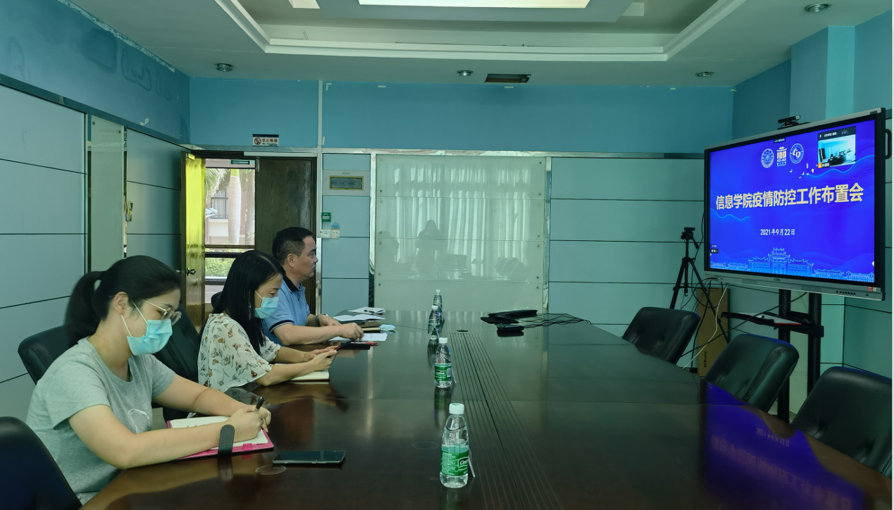 9月22日下午,信息学院于海韵行政楼A202会议室召开会议,专题部署进一步加强校园疫情防控工作,研判当前疫情防控工作面临的新形势和新挑战,传达学校疫情防控工作布置会的重要内容和精神,就学院进一步落实校园疫情防控要求进行再部署。学院党委书记刘弢主持会议并讲话。