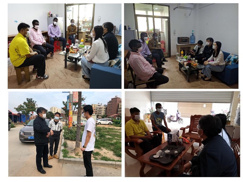 慰问组一行走访了沙美社区国际生租住的居所,看到学院老师上门,他们非常高兴,热情地迎进屋内,他们说得知学院老师要来,早早就了解了中国待人接客的礼仪,准备了蜜饯、饼干等茶点,希望能入乡随俗。