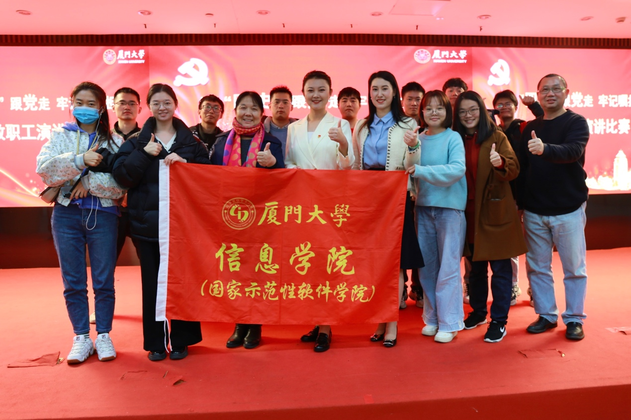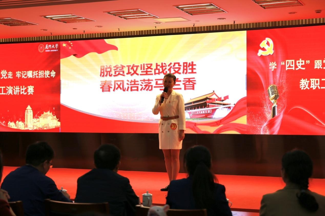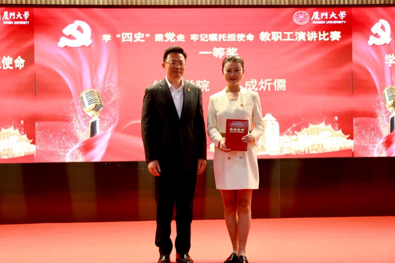 12月28日,厦门大学在思明校区科艺中心一楼多功能厅成功举办主题为“学‘四史’跟党走,牢记嘱托担使命”的教职工演讲比赛,我院成炘儒老师凭借饱满充沛的情感、精彩绝伦的演绎夺得本次大赛的冠军!