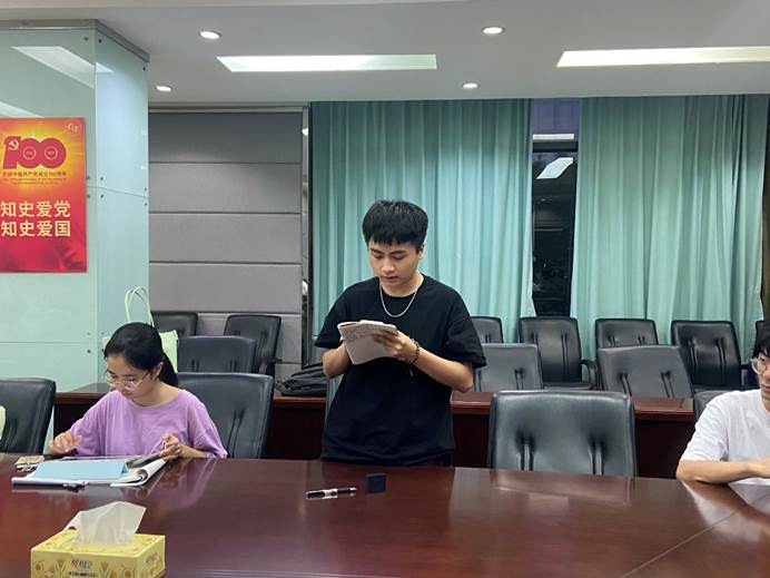会前,党支部敦促党员认真学习习近平总书记在庆祝中国共产党成立 100 周年大会上的重要讲话。在会议中,党员对讲话内容展开激烈讨论,并共同总结其中的重要精神内核,轮流分享各自的心得体会。